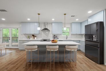 • Large kitchen layout designed for gathering and function
