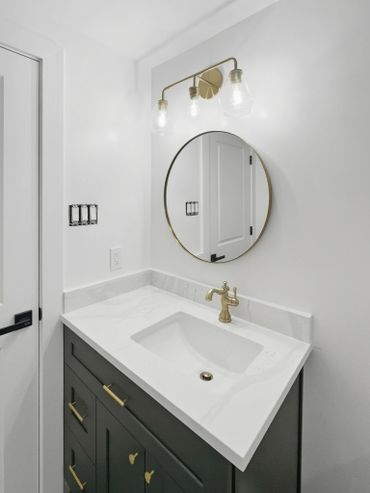 To elevate the space, we incorporated premium hardware with gold trim finishes, adding warmth and contrast against the modern materials.